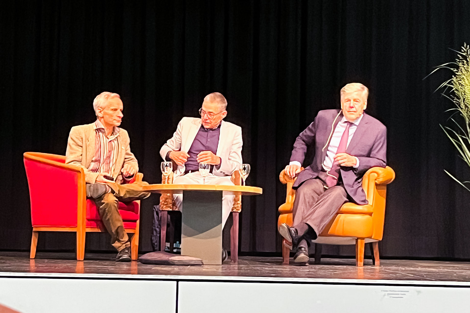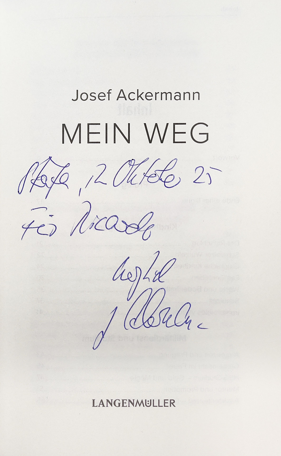 Joe Ackermann, Switzerland, was the CEO of Credit Suisse, Deutsche Bank and President of Zurich Financial, met in Person 02.10.2025, signed his book ‚mein Weg’, Picture (Left Prof. Mathias Binswanger, Middle Bernhard Schneider (Historian), Right Dr. Joe Ackermann)